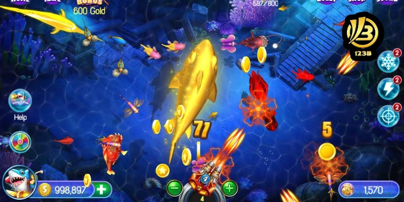 Tại 123b, tựa game đem tới cho người chơi cơ hội săn bắn các loài sinh vật biển đa dạng. Mỗi loài cá tương ứng phần thưởng quy đổi giá trị khác nhau. Điểm nổi bật của trò chơi là hệ thống boss lớn xuất hiện ngẫu nhiên, tạo cơ hội săn tiền thưởng khổng lồ.